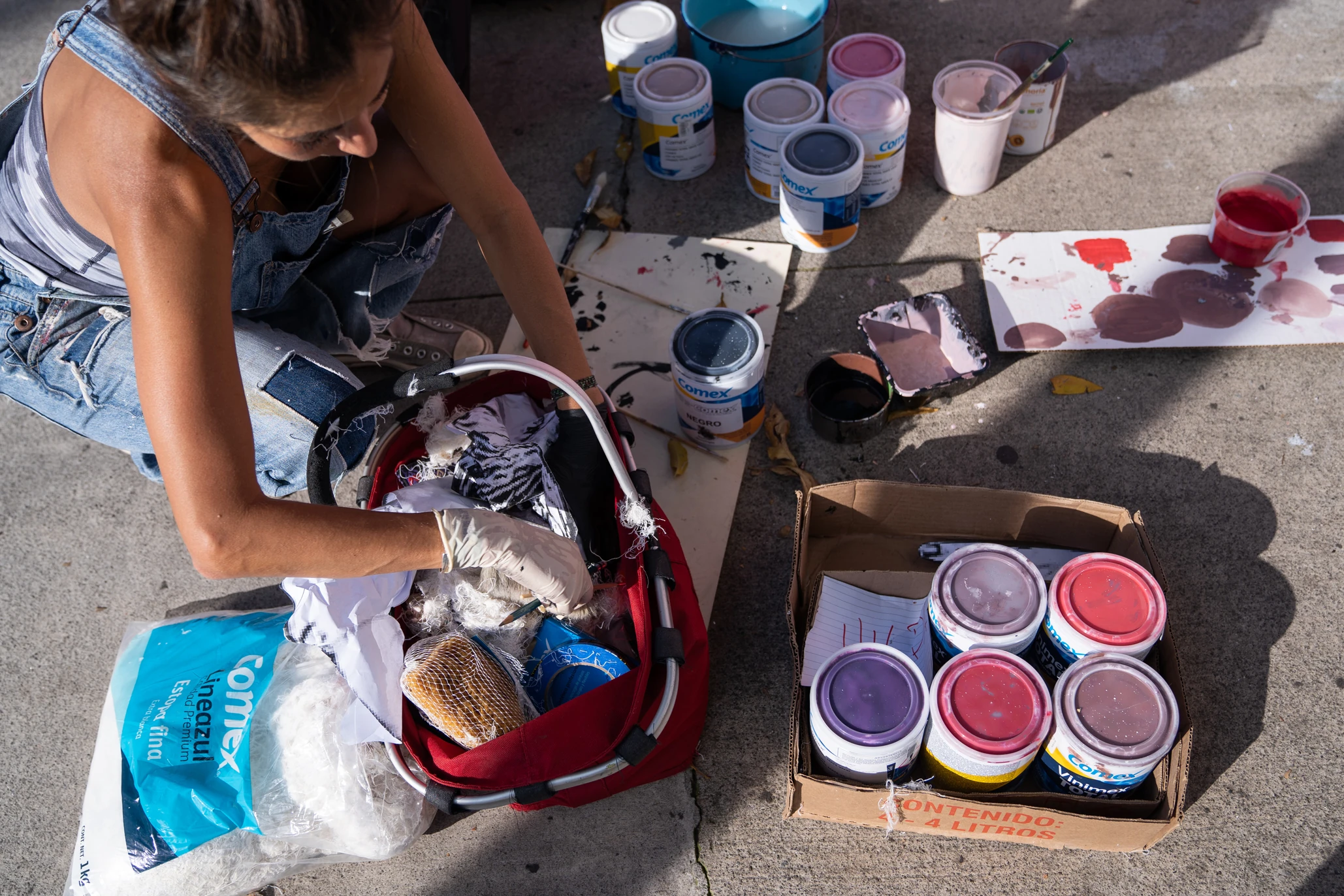 “Mi idea con el mural es trabajarlo como lo que estoy haciendo ahorita, obviamente es pintura vinílica, pero mi idea es trabajarla como si fuera acuarela y la parte de plumín, bueno estilógrafo, pero con pintura directa. La base son formas de varios colores y encima está la anatomía de la mujer”.