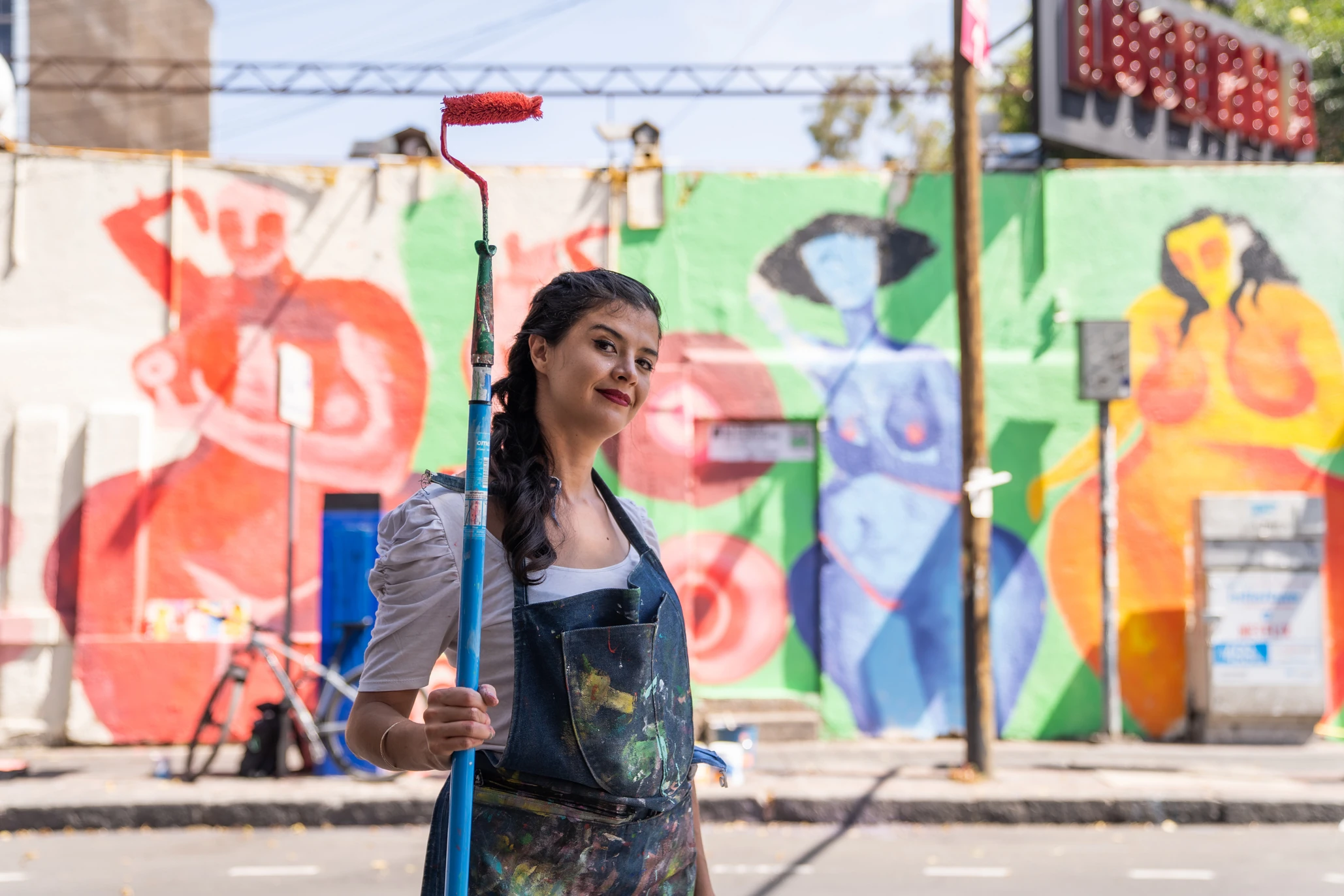 Lo que me gusta es que hay mucha gente que pasa, el espacio que me dieron es un formato alto y alargado y la maqueta que hice tiene que ver con mujeres reales normales, con esos cuerpos femeninos que no se castigan; gorditas, sensuales, que están desnudas. Me gusta la idea de que podamos representar estos cuerpos en el espacio público, y que el mural vaya a desmitificar un tipo de belleza y al mismo tiempo apoyar una cosa que tenemos que tener todas las mujeres en mente (cáncer de mama).