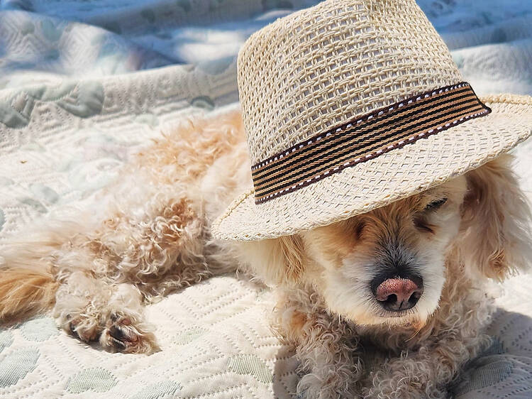 Realmente no requiere tantos cuidados, como puede parecer. La principal preocupación puede ser el sol, pero para ello puedes recurrir a un protector solar para perros y también su propio pelo los protege. Eso sí, bríndales un espacio con sombra para que descansen, no olvides llevarles su agua potable en un plato portátil.