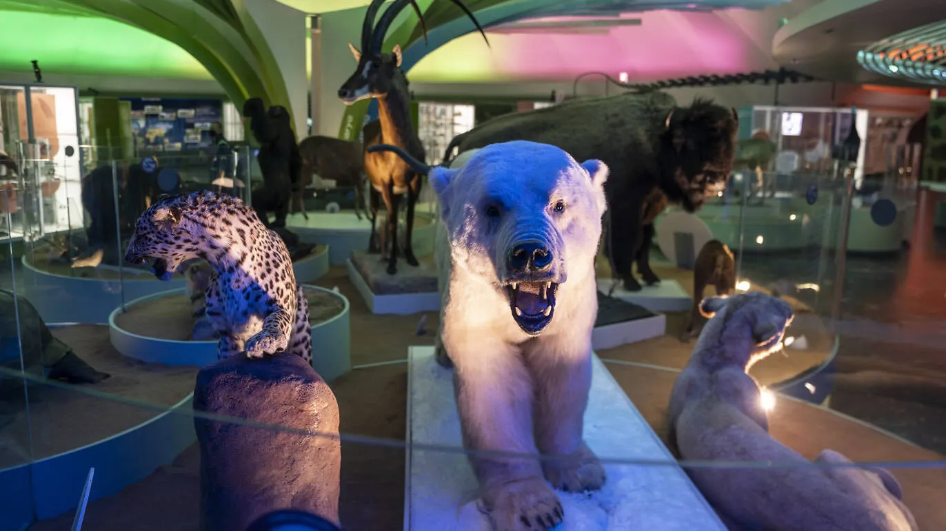 Un lugar verdaderamente fascinante, con algunos clásicos del inconsciente colectivo de los capitalinos: el oso polar de la entrada, los leones que atacan a unos ciervos, el leopardo de montaña que persigue a un faisán, el misterioso celacanto de las profundidades marinas y que se creía extinto.