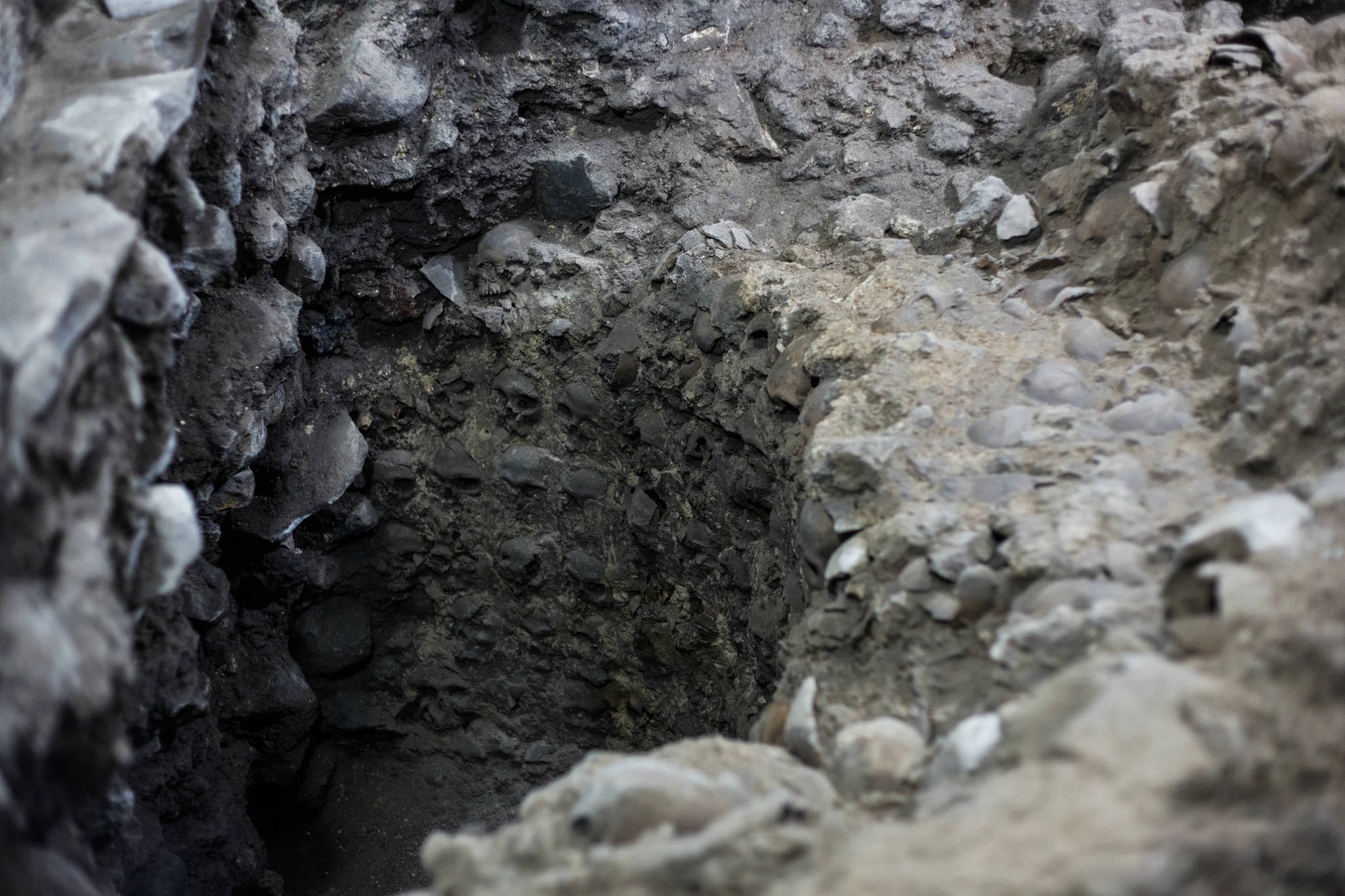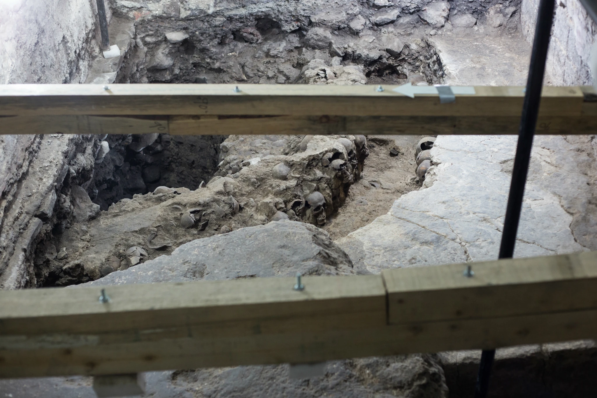 “Fue un edificio que impactó mucho a los cronistas, pero el único que lo describe detalladamente es Andrés de Tapia, un soldado de Cortés; él nos dice que contó las calaveras, la estructura era un teatro bajo con postes y por los travesaños se exhibían los cráneos y de cabo a cabo había unas torres de cabezas pegadas con cal y las escaleras del edificio estaban hechas con cráneos también. Se pensó que exageraba el hecho de que hubiera torres de cráneos, más bien se pensaba que eran clavos arquitectónicos, esculturas con forma de cabeza hechas en piedra. Pero fue hasta 2015 que encontramos la torre noreste que pudimos asegurar que en efecto el cráneo se estaba utilizando como un material constructivo”, explica la arqueóloga.
