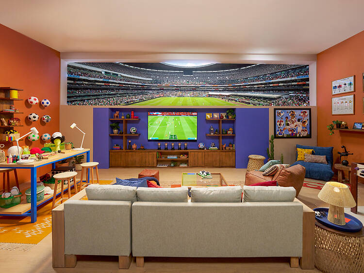 Para que te des una idea, cada huésped recibirá un boleto para asistir al partido inaugural de la Copa Mundial de la FIFA 2026TM el 11 de junio aquí en la CDMX. Serás guiado por Hugo Sánchez dentro del coloso de Santa Úrsula para conocer todos los secretos en la historia del futbol. En una de esas te enseña a hacer una chilena, mejor conocida como "huguiña".
