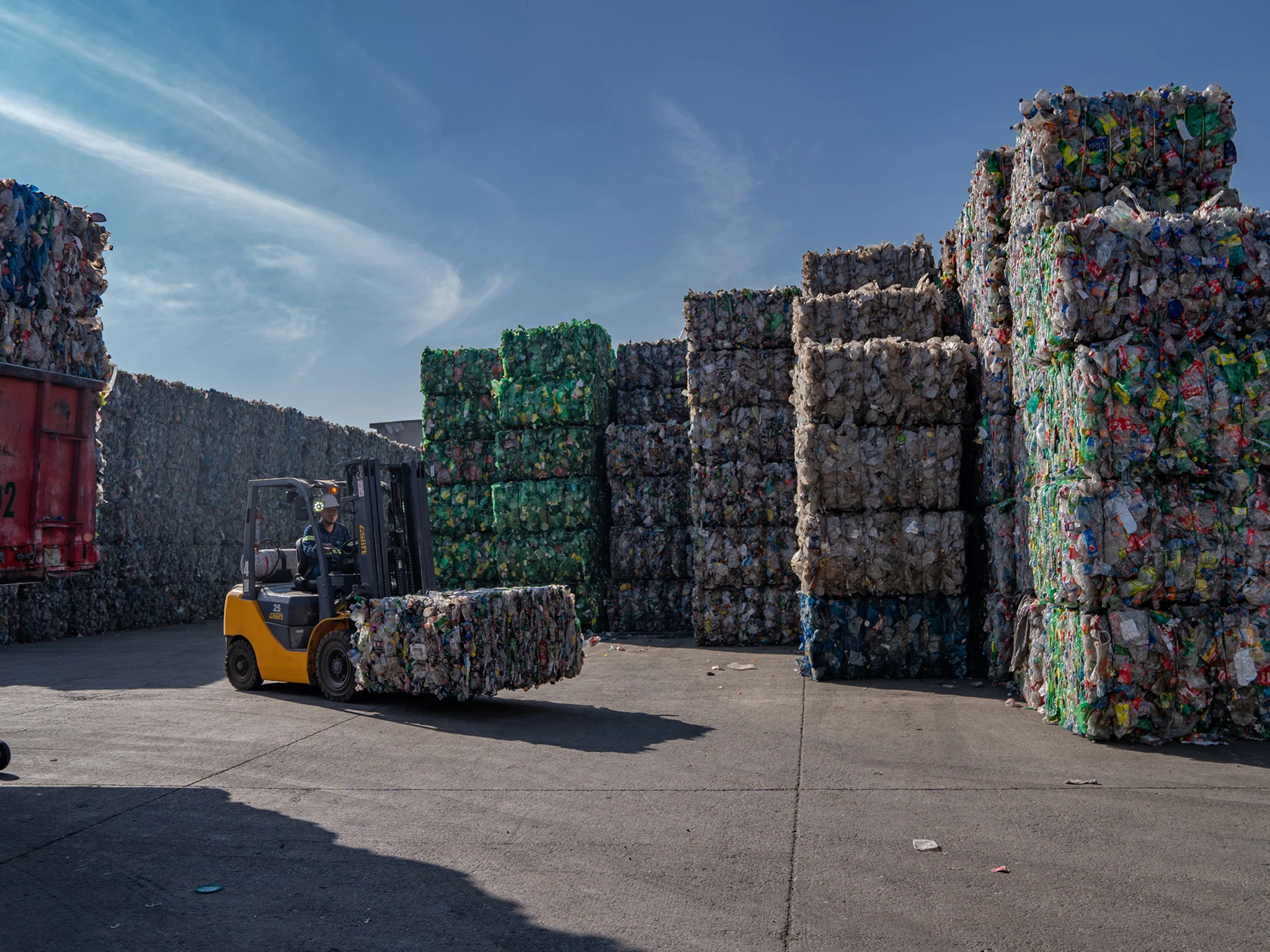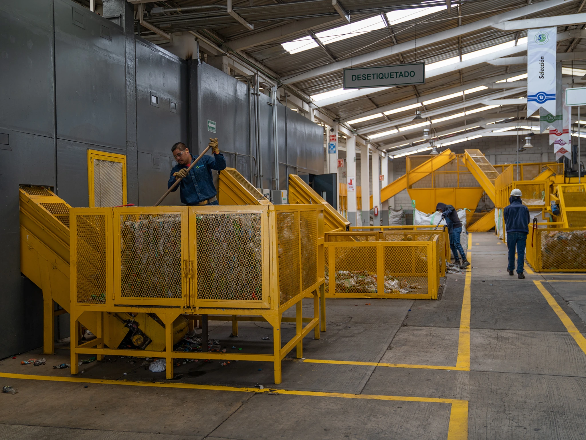 ¿Cómo reciclar una cantidad inimaginable de botellas? Todo inicia en la entrada de acopio que las recibe y posteriormente las lleva al almacén de materia prima; se dirigen a una banda de aceleración que dará valorización a la botella.