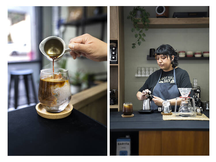 Tienen café de especialidad veracruzano, conocen a los productores con los que trabajan y lo tuestan en la Condesa. La barra consta de opciones básicas pero bien ejecutadas: un flat, algún filtrado especial natural o honey, y si vas de pisa y corre, hay un café del día en $30 pesitos. Si no eres team café, ojo con sus mezclas de té Quinto, todas huelen delicioso.