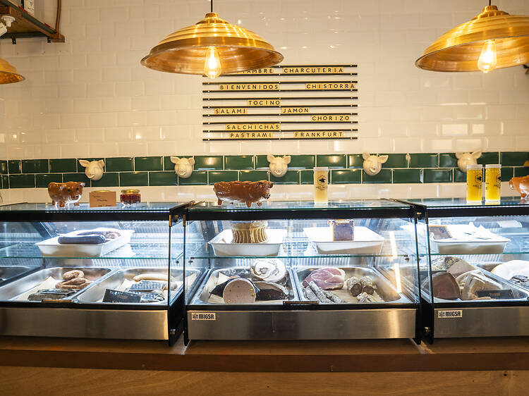 En este localito recién abierto, el chef Pablo López (Germano Charcutería) hace gala de su experiencia con la charcutería artesanal, por eso es que la vitrina protagoniza el espacio. Se especializan en embutidos y carnes frías sin sulfitos ni almidones, ya sea elaborados por ellos o de productores mexicanos, así que puedes esperar sabores mucho más reales que los industriales. La gama va desde varios estilos de chorizo, pastrami, salchichas alemanas o polacas, patés o chistorra. Todo lo puedes consumir ahí mismo con una copita de vino o llevar a tu casa a granel a partir de 100 gramos.