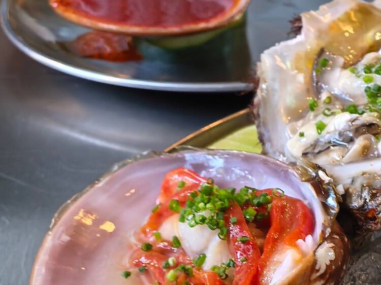 Como su nombre lo indica, aquí el producto estrella son los ostiones frescos, que provienen de Bendito Mar, un proyecto de acuacultura regenerativa en Baja California Sur. Ahí producen de forma sustentable no solo ostiones sino almeja chocolata, catarina o callo de hacha.