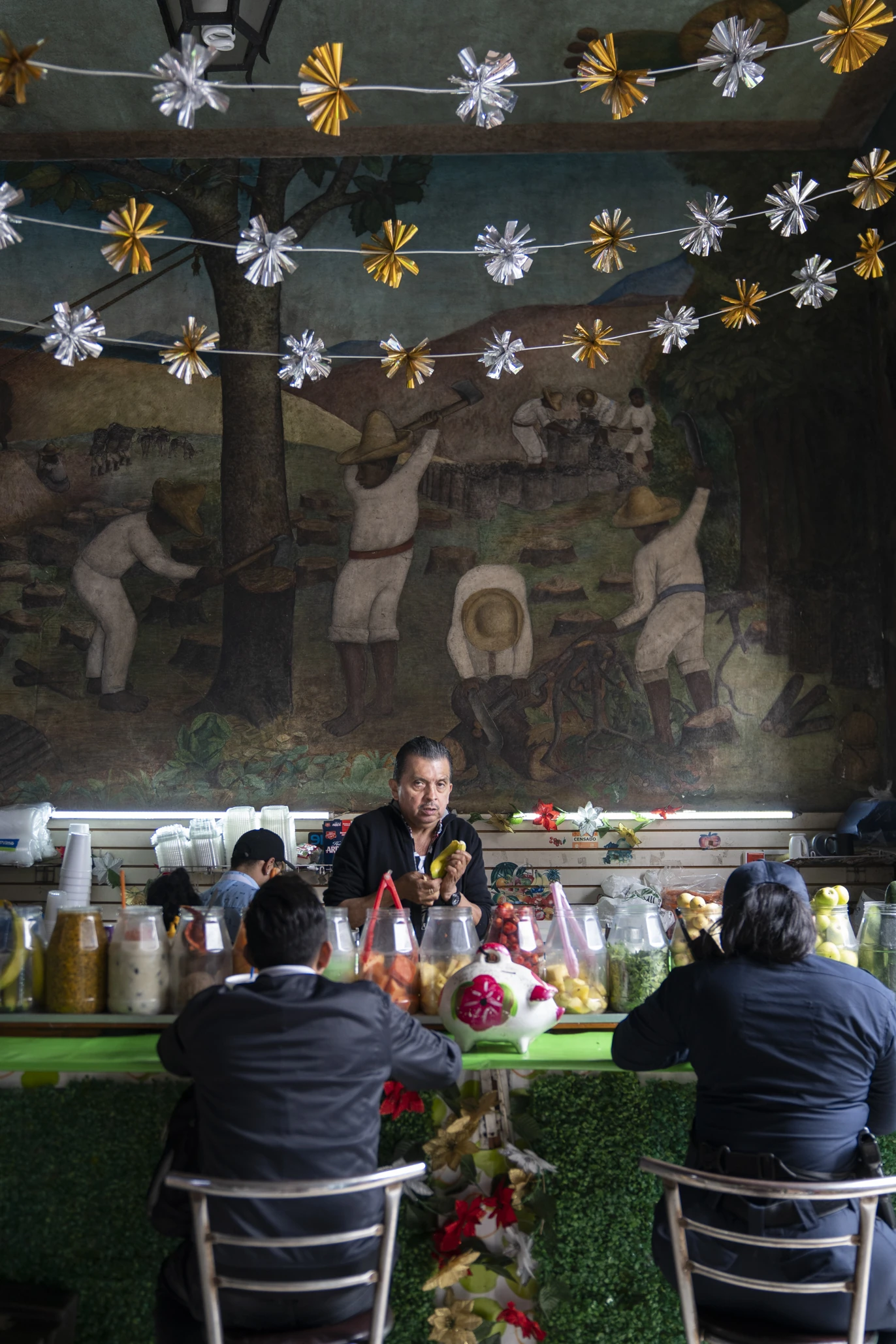 Su papá inició con el negocio desde los primeros meses del mercado, ahora él, aunque es profesionista, decidió seguir con el negocio familiar. Para la temporada de frío te recomendamos el jugo de kiwi con fresa y naranja, es fresco, dulce (sin ser empalagoso) y delicioso.